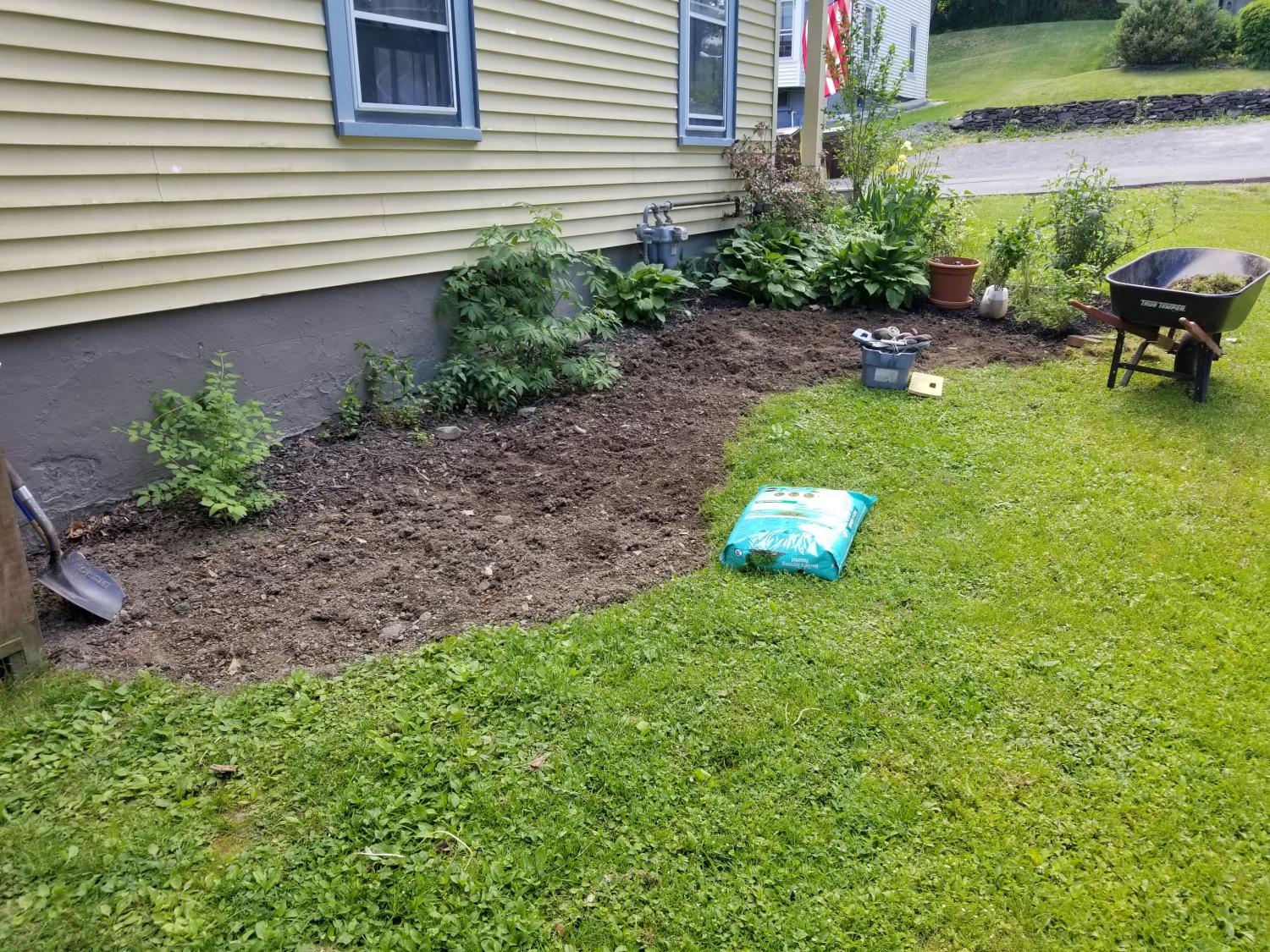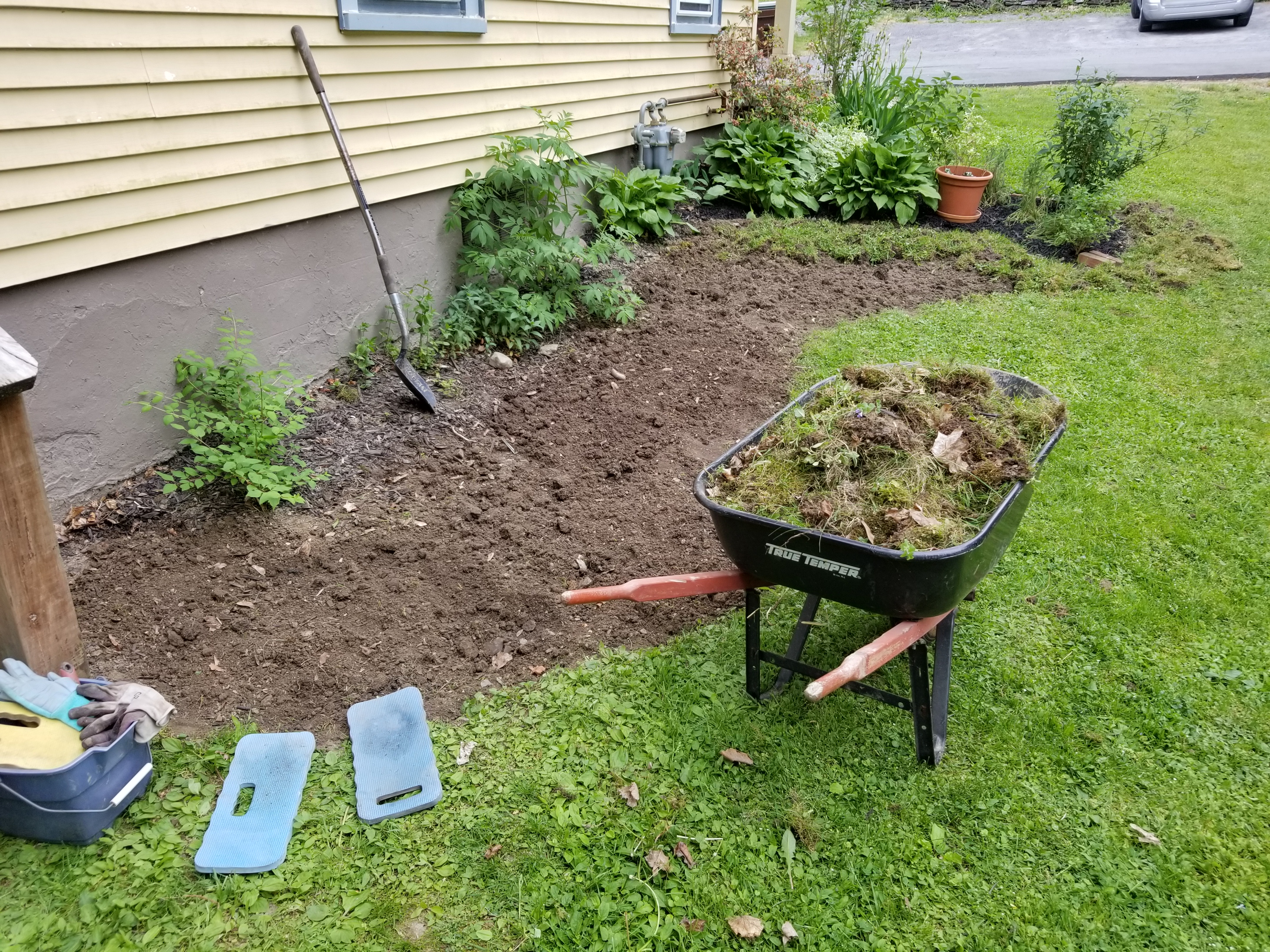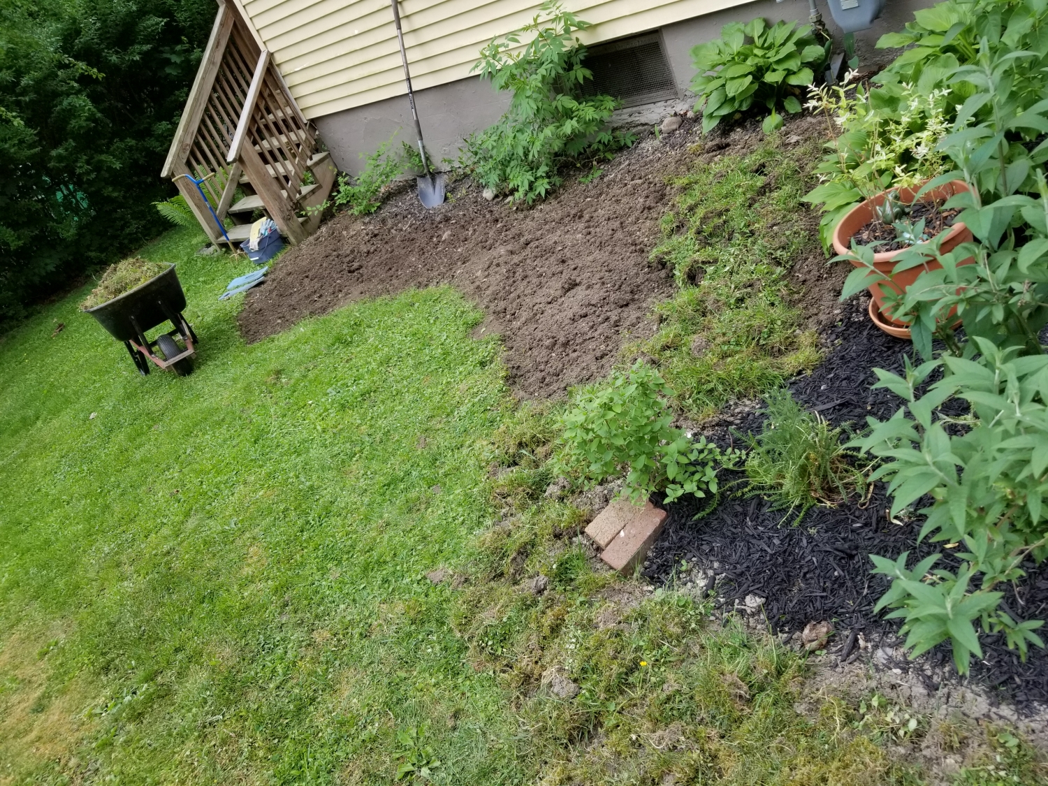 Existing along the house were masses of ditch lilies, which were taken out and composted.