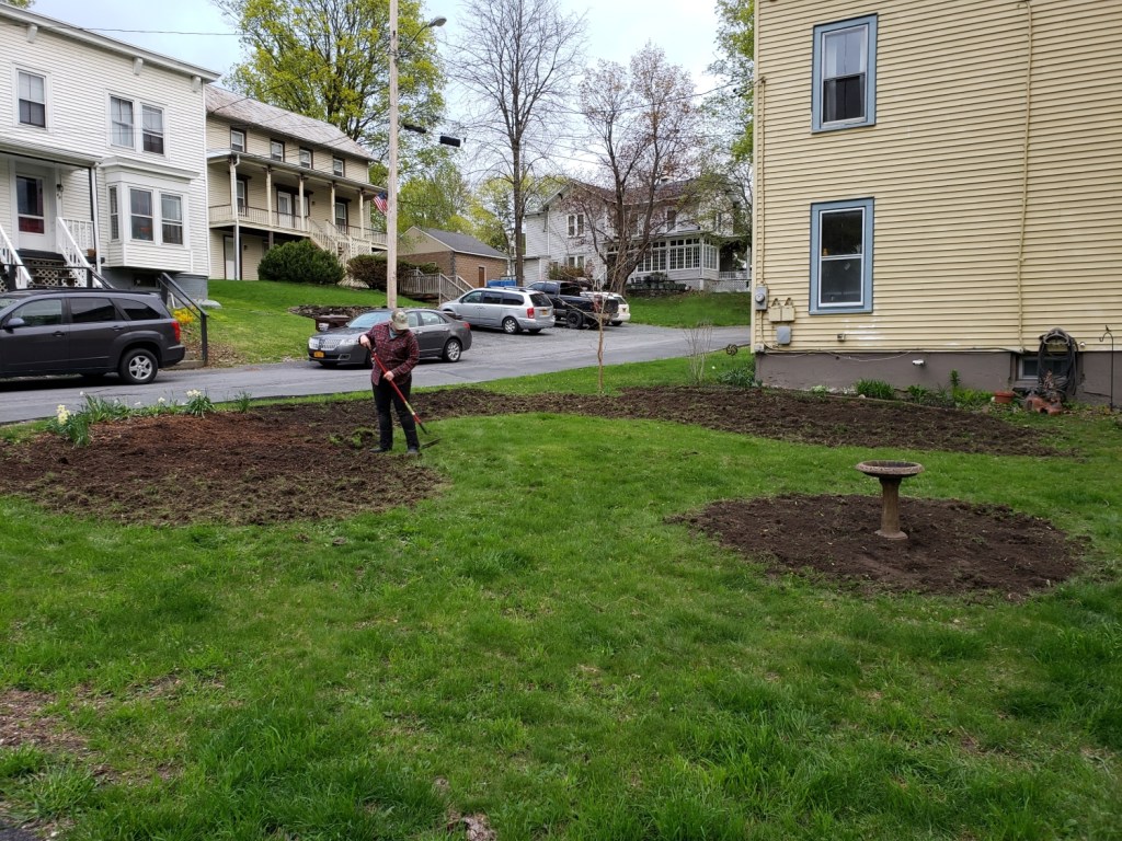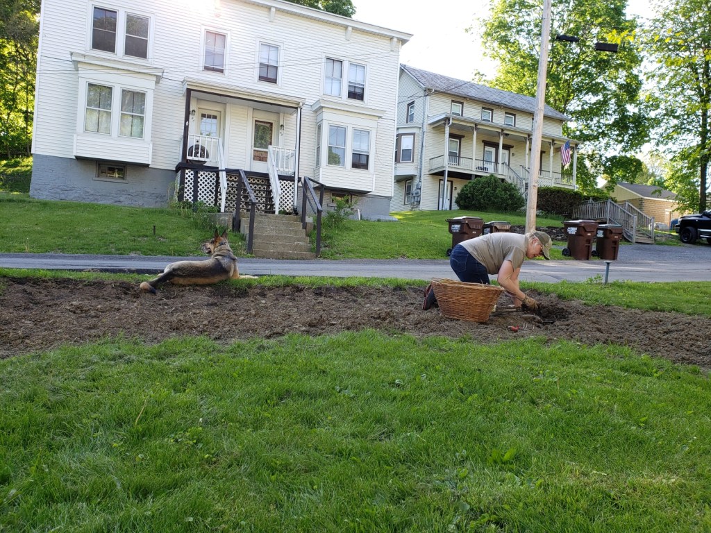 In the Spring of 2019, we broke ground on the Southern facing gardens by delineating a large swooping kidney shape into the lawn.