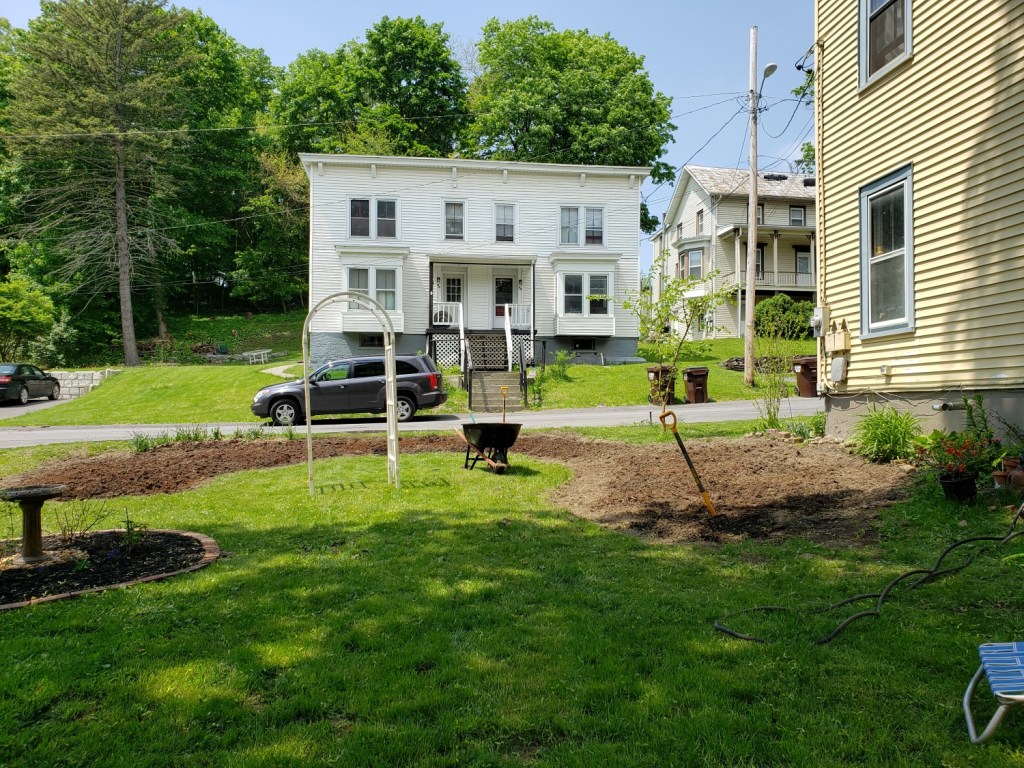 In 2018, we decided to remove the aging Silver Maple (left of the house) making the yard entirely too bare. The Norway Maple (right) still stands, serving as our only established shade tree.