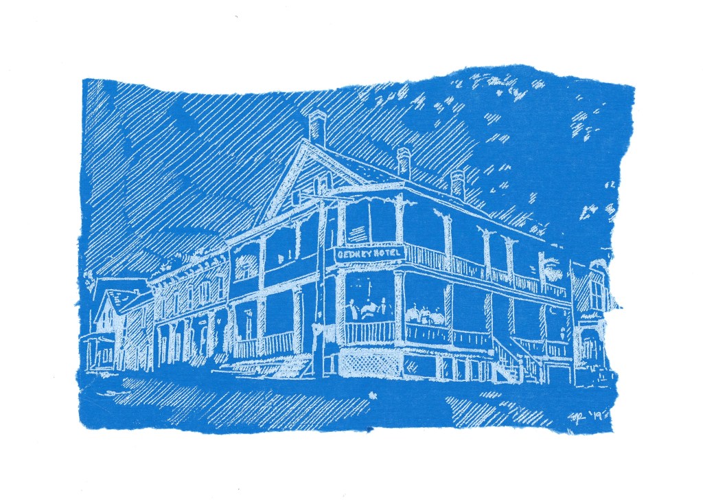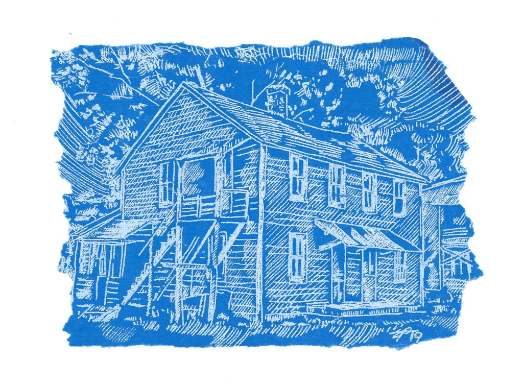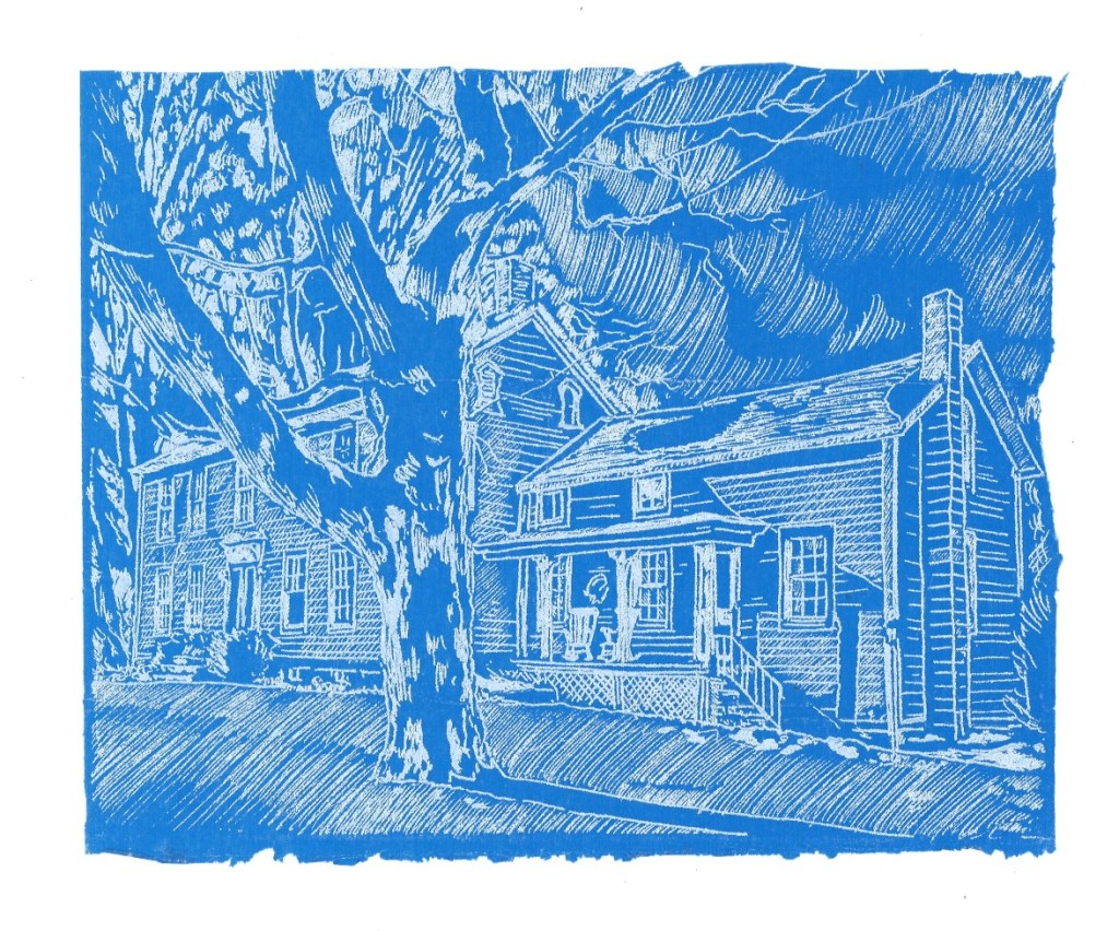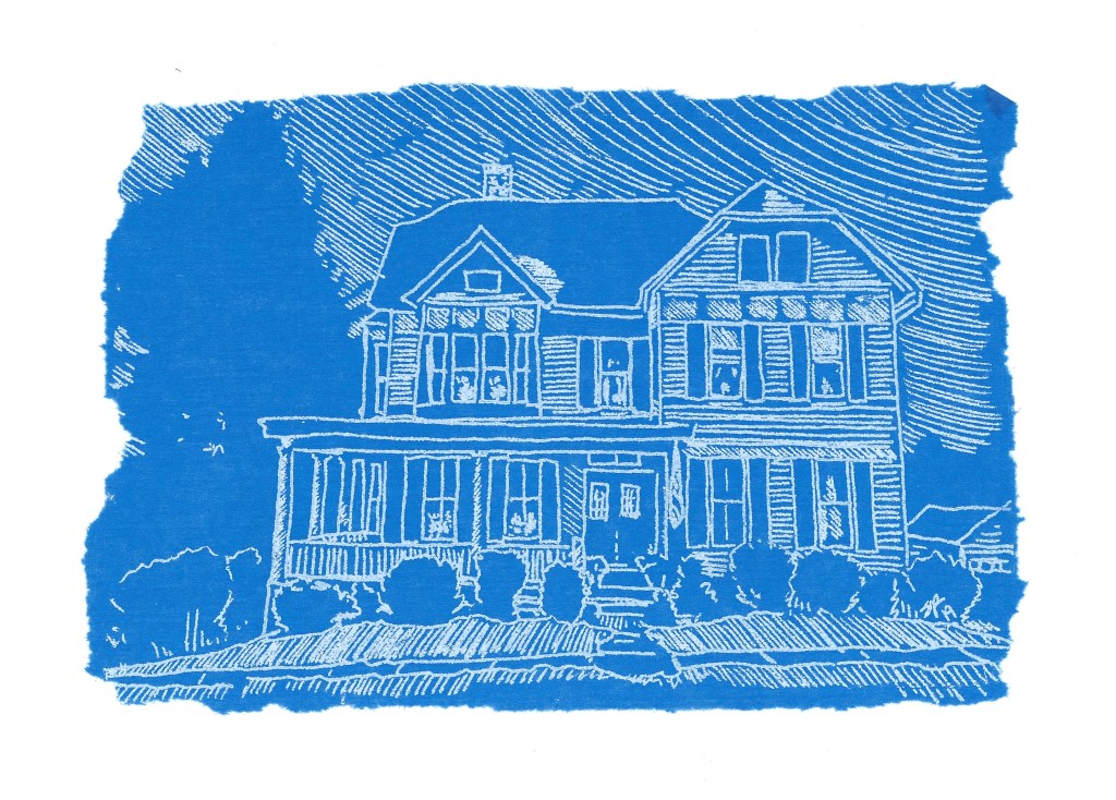 The series Blueprints That Never Were began in 2019 depicting historic buildings and elements in the Coeymans Landing Historic District, as part of the Our Town project. The significance of drawing on the cobalt blue tissue paper calls attention to the preciousness and fragility of these historic buildings, and the desire to capture their façade -in the absence of true architectural blueprints. This series gives homage to our historic architectural landscape, our homes, and the special roles they play in our daily lives.
